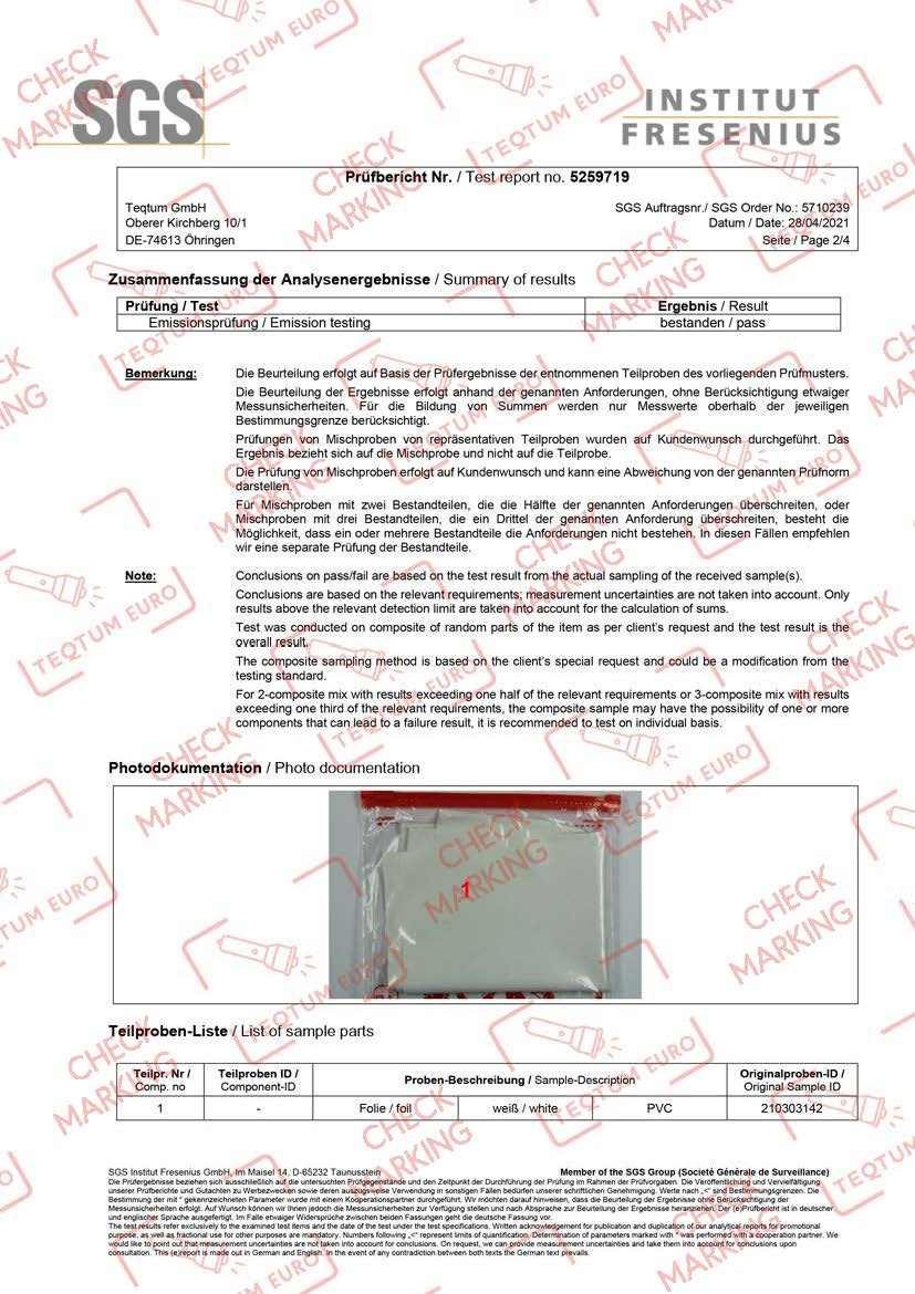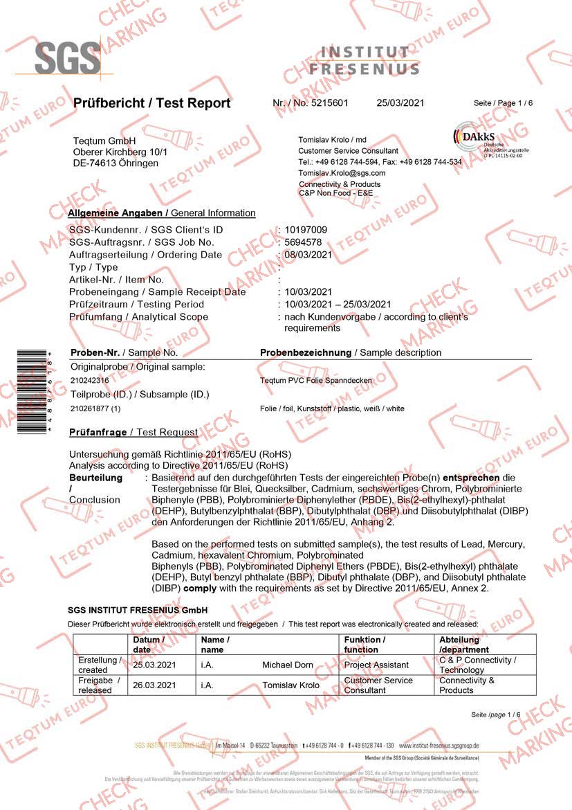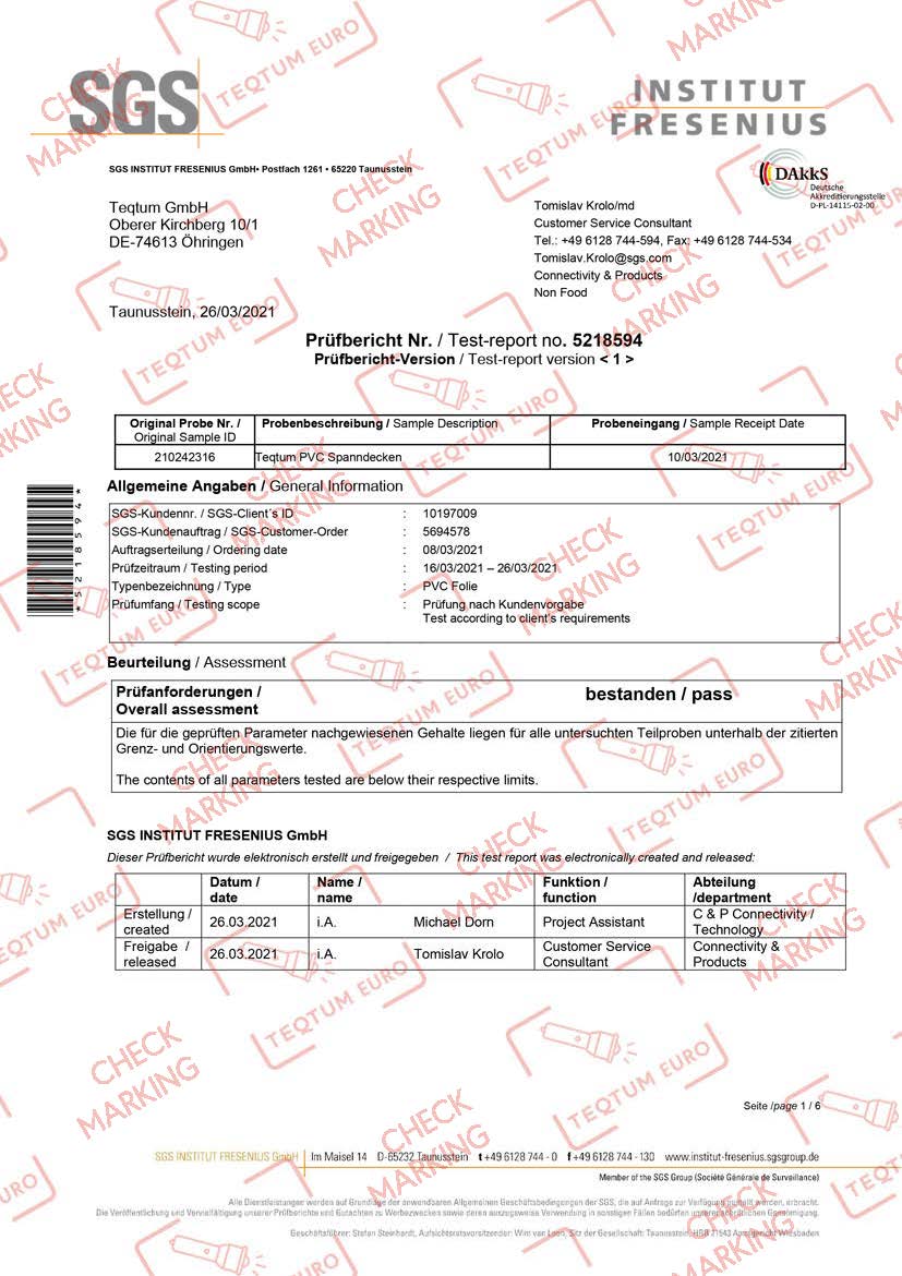 REACH (Registration, Evaluation and Authorisation of Chemicals) compliance ensures that materials meet strict regulations controlling the use of chemicals in manufacturing. The certification confirms that potentially harmful substances are restricted and properly regulated. This helps guarantee that the stretch ceiling materials are safer for both installers and the people living or working in the space.