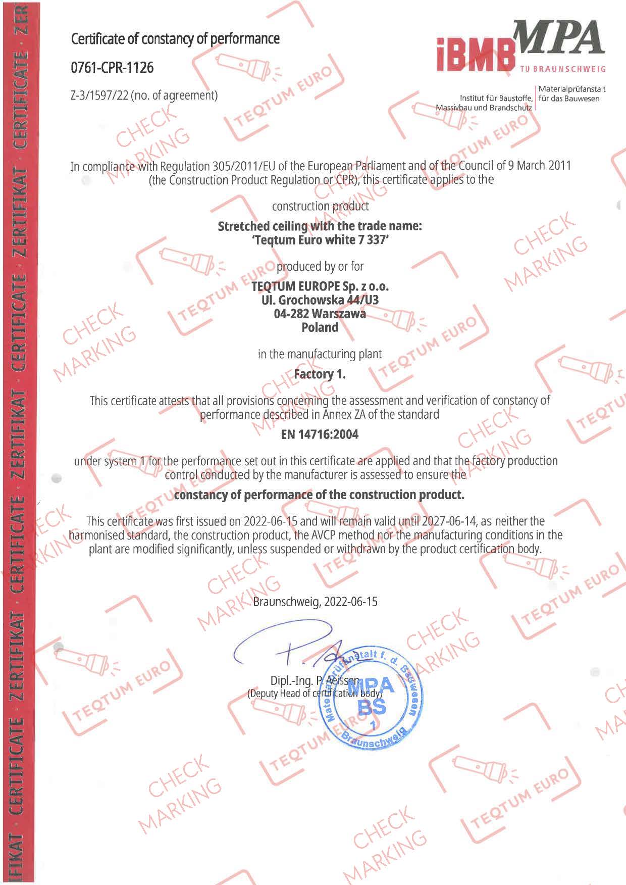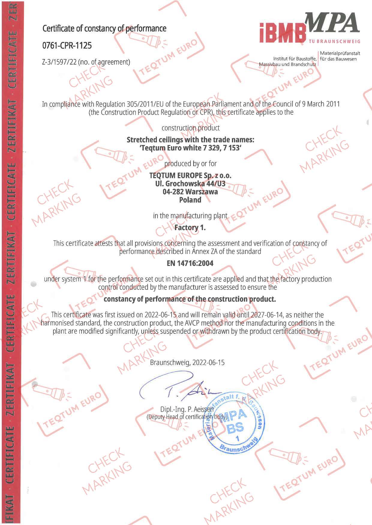 CE (“Conformité Européenne” or “European Conformity”) marking confirms that the materials comply with recognised safety, health, and environmental standards for construction products. For customers, this provides reassurance that the materials used in their stretch ceiling installation meet established quality and safety expectations.