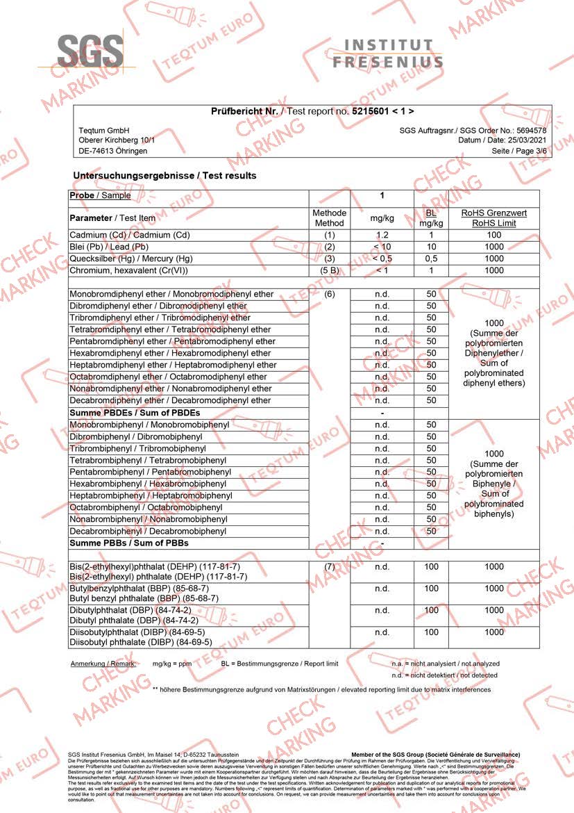RoHS (Restriction of Hazardous Substances) certification restricts the use of certain hazardous substances in materials and components. It ensures that harmful elements such as lead, mercury, and cadmium are limited or eliminated during production. This contributes to safer products, reduced environmental impact, and greater confidence in the quality of the materials used.